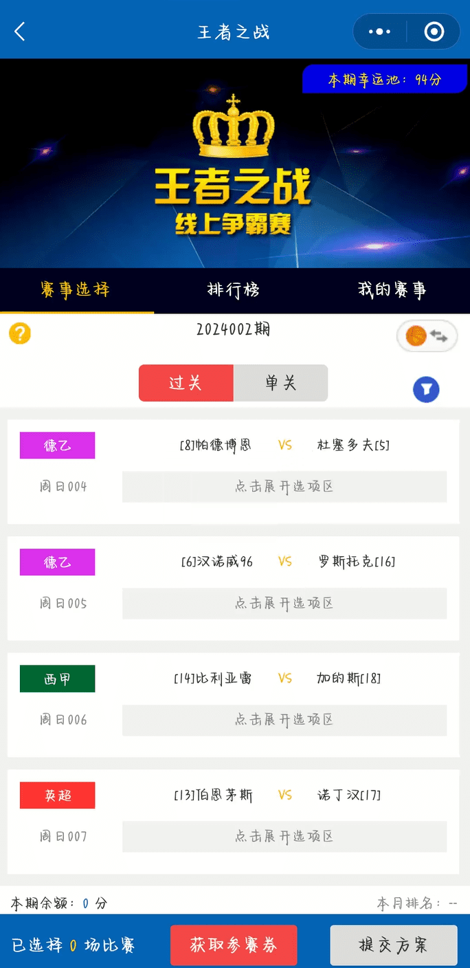 在此期间还开发了五星体育的“超G草根”小程序,该小程序主要是吸引用户竞猜比分,提高主站的流量。用户登录获取积分,或者在商城购买竞猜优惠券获取积分,选择比赛玩法,等待开奖结果获取积分等业务。